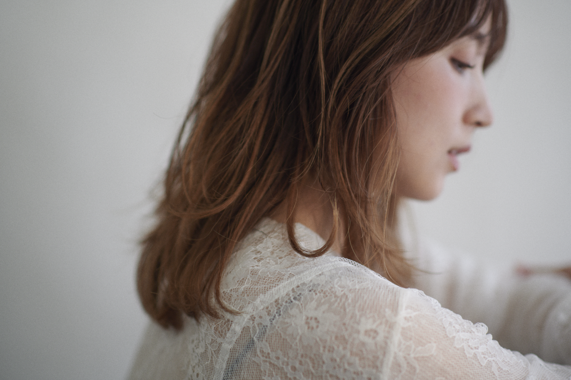 レイヤーのカットラインに合わせたスライス取りで、自然な色の重なりを演出。髪を動かしたときにもブラウンとハイライトがなじみ、ナチュラルなイメージをつくり出している。